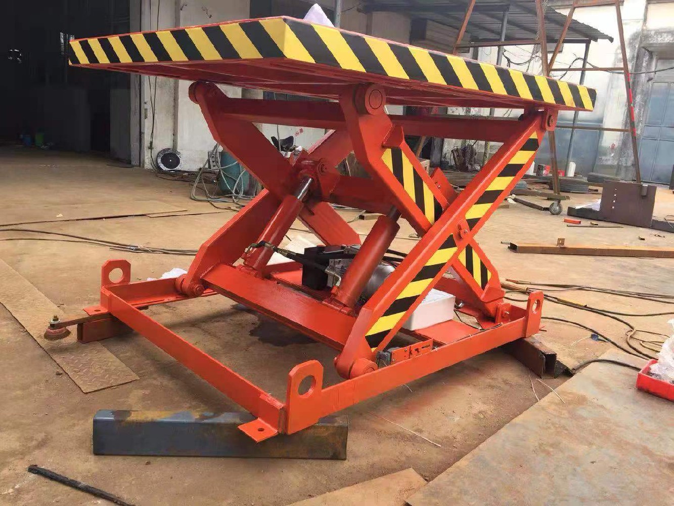 单叉升降平台一种承载量大、升降平稳的货物举升设备。 它普遍用在工件装配时调节工件高度,大型设备装配时部件举升,大型机床物料上料、下料以及机器保养、定位、组装、工件装配、仓库、车库、工作车间等生产流水线高度差之间货物运送;它的作用在于减少人力上下搬运的时间成本,轻松完成货物高度差之间的举升输送
